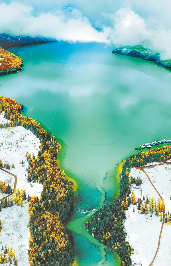 Изумруденото зелено с млечен оттенък добавя оживена нотка към езерото Канас, чийто пейзаж е покрит със сняг през по-голямата част от зимата. Този скрит скъпоценен камък в най-северния ъгъл на автономния регион Синцзян-Уйгур привлича посетители с митичния си чар. КИТАЙ ДЕЙЛИ