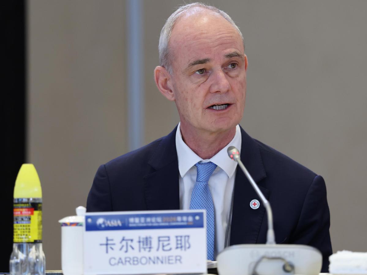 Жил Карбоние, вицепрезидент на МКЧК, направи забележките по време на ексклузивно интервю за новинарска агенция Синхуа в кулоарите на продължаващата Годишна конференция на форума Боао за Азия 2026 г., която се провежда от вторник до петък в южнокитайската провинция Хайнан.