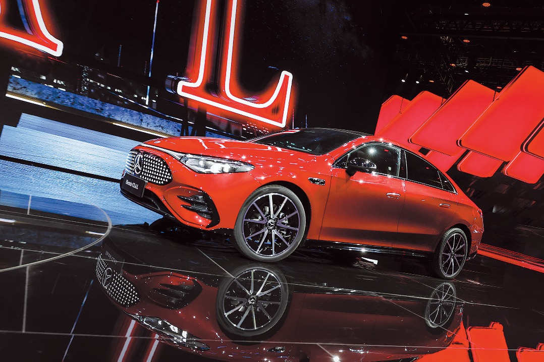 Mercedes-Benz представя електрическата CLA L на автомобилното изложение в Шанхай през 2025 г. през април. Китай ежедневно