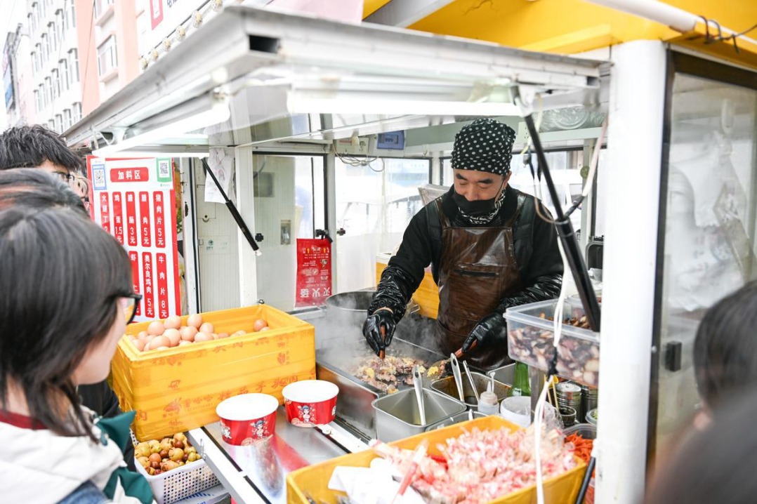През последните няколко дни щандът с пържен ориз с яйца се превърна в популярно място за студенти, посещаващи Нормалния университет на Дзилин в Сипинг, провинция Джилин.