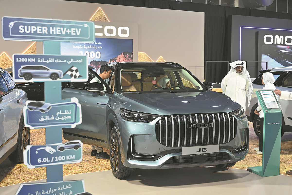 Посетителите инспектират джипа Jaecoo J8 от Chery на The Auto Show 2025 в Кувейт, на 22 септември. Асад/Синхуа